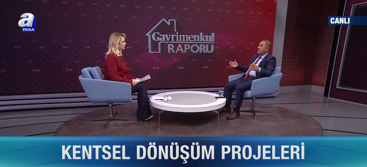 Merve Tepe'in sunuculuğunu yaptığı Gayrimenkul Raporu programına, CEO'muz Yücel Evsen Konuk oldu. A Para ekranlarında kentsel gönüşüm projeleri ile ilgili bilgiler verdi.