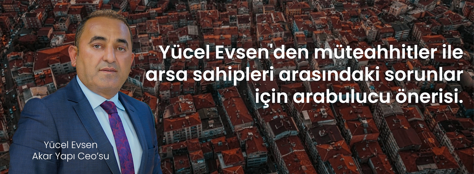 Kentsel dönüşüm ve konut arzının hızlanması için arsa sahipleriyle müteahhitler arasında yaşanan sorunların çözümü için arabulucu önerisinde bulunan ÇEKMÜDER Başkanı Yücel Evsen, "Özellikle paylı satışlarda tıkanıyoruz. Bu sorun aşılmadığı için 15 yıldır bekleyen projeler bulunuyor" dedi.
