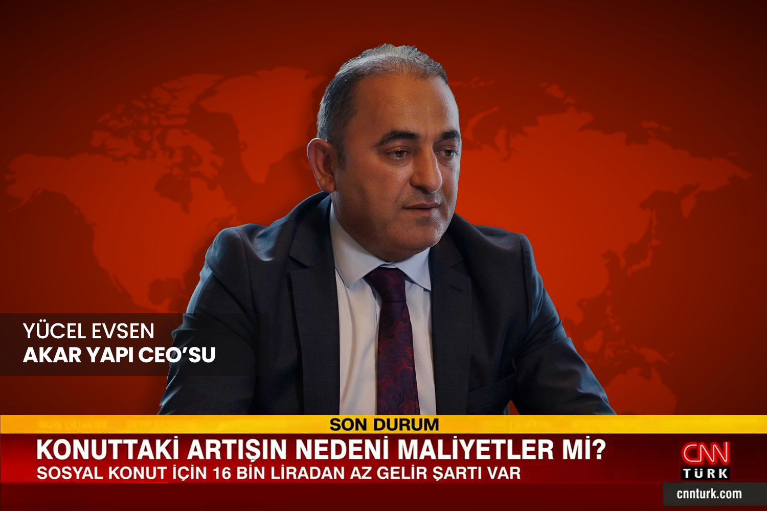 81 ilde geçerli olacak ve ilk etapta 100 bin konut satışının yapılması planlanan, “Çevre, Şehircilik ve İklim Değişikliği Bakanlığı ile Maliye Bakanlığı” tarafından geliştirilen “Dar Gelirliye Konut” kampanyası vatandaşın dikkatini çekmeyi başardı. Akar Yapı Ceo’su ve Çekmüder başkanı Yücel Evsen, proje detaylarını ve kampanya hakkındaki önemli bilgileri CNN Türk ekranlarında, Göksu Öngören Özgür'ün sunumu ile Gündem programında açıkladı. İşte Evsen’in “Dar Gelirliye Konut” projesi hakkında söylemleri…